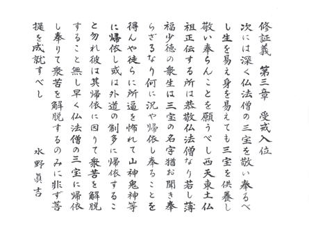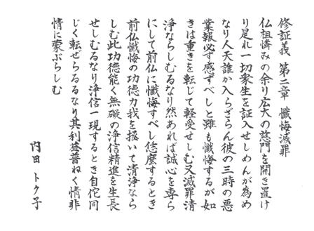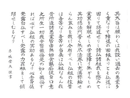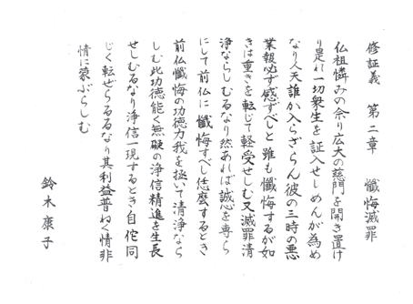 現在、継続中の「毎日書道」は、漢字にかな文字がまじった『修証義』の写経なので、文字のバランスをとるのが難しいかなと懸念されましたが、作品はどれもこれも、まとまりのある素敵なものでした。今回は八十五通の応募作品の中から十二点を厳選しました。