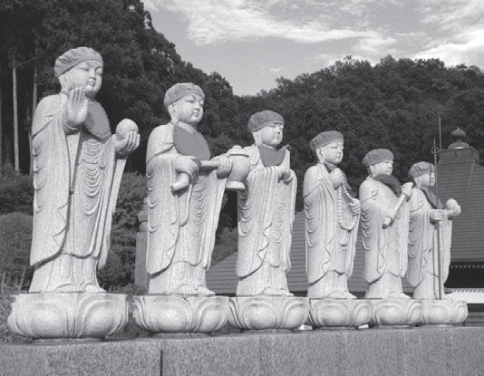 お地蔵さまは六道能化救済者とも呼ばれます。六道とは地獄、餓鬼、畜生、修羅、人間、天、すなわちわれわれ生きとし生けるものが、善悪の業によっておもむき住む六つの迷いの世界です。この六道のどこでも、必ずお地蔵さまは救って下さいます。